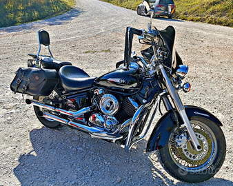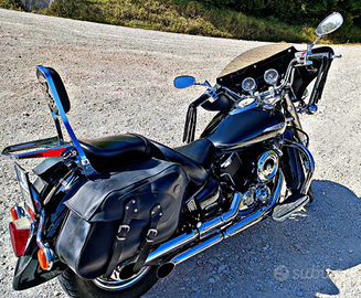 Vendo bellissima Yamaha dragstar 1100A classic completa di sissybar passeggero e conducente, batwing, manometro temperatura olio, stereo, copri serbatoio in pelle, copri manopole in pelle e borse grandi in cuoio, gomme cambiate da 2000 km , sempre tagliandata e manutenzionata. Prezzo leggermente trattabile.