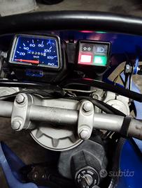 la moto dispone di un miscelatore di serie abbinato a una pompa dell'olio NUOVA e uno scarico aftermarket completo Giannelli; è inoltre omologata per due persone a libretto e dispongo delle due pedaline originali di serie.