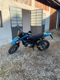 Vendo a malincuore dt 125 tenuta benissimo e tagliandata sempre, pistone e cilindro appena rifatti. Vendo con seguenti modifiche: -kit athena 170cc -Carburatore pwk 28 -scarico artigianale m.d.m. Marri calcolato -codino rifatto -mini frecce a led -vface -contachilometri digitale -leve freno e frizione blu -para leve Cedo insieme alla moto pancia originale