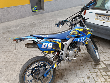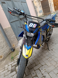 Kit completo 70 dr Scarico completo Giannelli Frizione Malossi Filtro Polini Carburatore 21 dell' orto Pacco lamellare Malossi Maggiorazione con 2° radiatore Kit tubi radiatore blu Copri raggi blu Adesivi cerchi blu fluorescenti Kit grafiche Manopole protaper con dettagli blu Leve freno e frizione anodizzati blu Frecce led Coppetta olio freno maggiorata Corona stage 6 in alluminio Catena e pignone nuovi Pneumatici Pirelli Angel CT messe da un anno