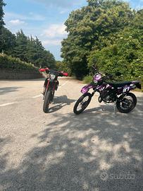 Vendo per passaggio a cilindrata superiore yamaha dt 50 r del 2011. La moto monta un cilindro top nero 73.5 bifascia, scarico leovince v6 pacco lamellare carenzi con lamelle in carbonio e carburatore 19 dell'orto (cedo anche un 17.5). I cuscinetti del motore hanno meno di 3 mesi. Alla moto è stata cambiata anche la catena la corona e il pignone 14/54.La moto inoltre monta grafiche personalizzate viola . Cedo paracolpi rockstar energy. Prezzo trattabile