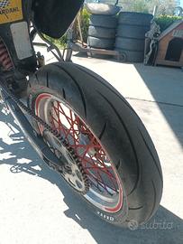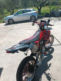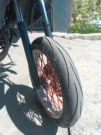 vendo a malincuore la mia splendida Yamaha dt 50x la moto monta: maxikit tpr86 con cilindro montato a febbraio, 28pwk polini, vl18 malossi, imbocco stage6 cin basetta rossa, yasuni r4, secondo radiatore malossi con tubi malossi e radiatore destro nuovo. Di estetica monta vface angel eye, sterzo gencod messo l'anno scorso, devio luci, carene in carbonio forgiato e rosso bmw fatte il mese scorso, pedane crf450, portatarga pieghevole, manopole domino, pompa radiale adelin, disco posteriore e pasticche nuovi, gomme dunlop semislick messe a febbraio, coprisella krm. prezzo trattabile