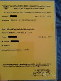 Completamente originale in ogni dettaglio, munita di doppio cavalletto, centrale e laterale; la moto è ferma dal 2014, sempre tenuta in garage. Acquistata nel 2008, sistemata all'epoca e iscritta al Registro Storico FMI dal 2009, con relativo certificato di storicità, come visibile dalle foto. Bollo ridotto (circa 11 euro annui, variabile in base alla Regione).