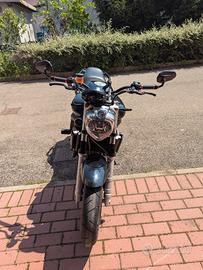 Vendo fz6 del 2006 Total Black 4 cilindri 100cv, 34533 km reali come da foto tenuta sempre in garage su cavalletto posteriore e coperta da telo quando non usata nel periodo invernale,MAI PISTA. Accessori montati: - scarico omologato "FF by fresco" - pompa freno Brembo RC17 - tubi freni anteriori e posteriori in treccia - pompa benzina nuova - batteria nuova - frecce di direzione anteriori e posteriori dinamiche -staffe, supporto e bauletto posteriore GIVI - specchietti a manubrio Moto sempre tagliandata 2 volte all' anno, non perché c'era bisogno ma per scrupolo mio, le gomme sono al 30%. Prezzo leggermente trattabile A disposizione anche accessori originali