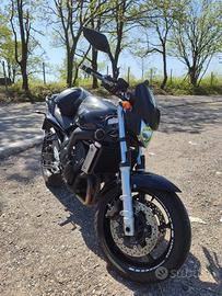 vendo come da annuncio: Yamaha FZ6 limited edition total black del 2005 4 cilindri molto potente di derivazione R6 98cv 14mila giri. tagliando effettuato, gomme nuove (-500km) e pastiglie fatte Brembo rosse. La moto ha meno di 30mila km, è un orologio, perfetta come motore e mantenuta molto bene nonostante i 20 anni passati. Mai sinistri o strisciate In regalo cupolino e codone unghia monoposto staccabile specchietti, manopole e contrappesi After market. naturalmente ho i suoi originali che cedo all acquirente. la moto attualmente è assicurata, per qualsiasi prova