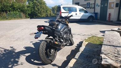 Moto in ottime condizioni, dotata di scarico Akrapovic, sterzo rialzato in alluminio anodizzato, leve freno e frizione regolabili, cupolino in metallo, specchietti racing, tamponi in teflon laterali. Parafango anteriore e posteriore wrappato carbonio, portatarga rialzato, frecce a led anteriori e posteriori. Moto in ordine, mai usata in pista, mai caduta o incidentata. Gomme in ottimo stato. Ereditata da un amico non più in grado di guidarla, vendo per passaggio a scooter cittadino. Regalo cavalletto posteriore e telo coprimoto. Valuto e prediligo scambio alla pari o eventuale conguaglio a mio favore con scooter a ruote alte 125/150 cc es. Sym Simphony, Kimko People, Piaggio Liberty et similia