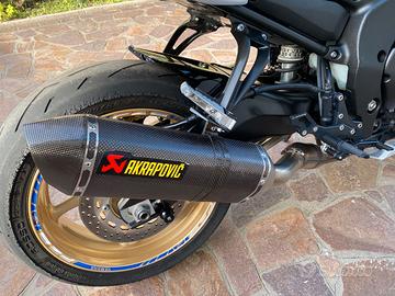 Vendo Yamaha FZ8N del 2011, moto tenuta sempre in garage con cavalletti e telo anche in estate. Secondo proprietario, uso medio di circa 3.000 km/anno, sempre tagliandata. Manutenzione e stato: Bollo pagato fino al 2027 Revisione valida fino a giugno 2027 Ultimo tagliando luglio 2025 (olio, filtro olio) Batteria nuova (giugno 2023) Paraoli forcella cambiati nel 2022 (con ricevuta) Olio e filtro sempre cambiati ogni anno Catena, pignone e corona DID con soli 10.000 km Gomme Pirelli Supercorsa SP (omologate) al 70% Sempre rimessata in inverno con mantenitore di carica Accessori montati: Specchietti Viper Puntale sportivo Manubrio SRT piega bassa + bilancieri SRT (ergal) Tamponi paramotore Barracuda Portatarga sportivo + frecce LED Barracuda Terminale Akrapovic in carbonio Pedane arretrate Geko Racing (cambio rovesciabile) Telai + borse da viaggio (dx e sx) Cupolino rialzato regolabile Valvole gomme in alluminio Idrostop nuovo mai montato Tutti i pezzi originali disponibili Difetti estetici: piccola crepa su airbox/parafango e una riga sul puntale. Prezzo: 4.100 € senza accessori 4.350 € con accessori (Prezzo trattabile) Motivo vendita: cambio segmento. No perditempo. Passaggio a carico dell'acquirente.