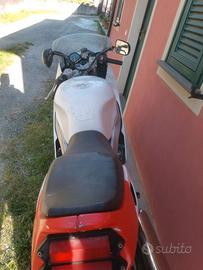 Vendo fzr 600 1994 gomme montate l'anno scorso e mai utilizzata avranno 500 metri giusto per provarla pastiglie freni davanti e dietro nuove tagliando fatto l'anno scorso con cambio di candele paraolio anteriori filo della frizione nuovo mai messa in strada accesa l'ultima volta agosto dell'anno scorso c'è da cambiare il radiatore che ho già in mio possesso non scambio vendo solamente prezzo trattabile si vende con la formula vista e piaciuta