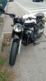 Vendo Fazer customizzato come da foto. Anno 2003, in perfette condizioni, tagliandato, revisionato (prossima revisione a luglio 2026), gomme Dunlop al 90%, scarico Gpr omologato stradale, non necessita di nessun intervento (sostituito olio forcella e paraolio, olio e pastiglie freno, filtri sostituiti, bollo pagato fino a luglio 2026), da vedere!