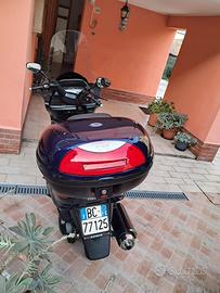 Bauletto (comprato a parte), un telo per coprirlo, doppie chiavi e il suo cupolino trasparente originale perché attualmente ne monta uno maggiorato più grande per coprire meglio dal vento ma abbiamo anche quello originale di serie con cui é uscito di serie.