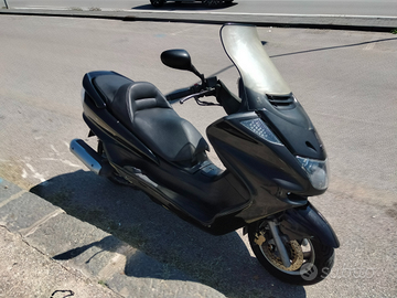 Per acquisto nuovo motociclo vendo a prezzo minimo Yamaha Majesty 250. Il prezzo riportato non è trattabile e non comprende il passaggio di proprietà. Considerata l'età dello scooter si vende visto e piaciuto. Parte perfettamente a primo colpo ma ha bisogno di alcuni interventi di manutenzione per un valore indicativo di 300?, fra cui il variatore e lo statore da cambiare in quanto, come quasi tutti i Majesty datati, lo statore carica la batteria un po' meno del necessario e quindi questa tende a scaricarsi. Ha quasi 50.000km ma con gli interventi sopra descritti ne potrebbe fare ancora molti altri. Per il resto, come si vede dalle foto, è ben tenuto, complessivamente in buone condizioni ed esteticamente presentabile. No spedizione e ritiro in loco con contestuale trasferimento di proprietà.