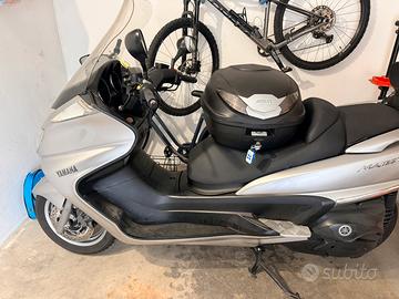 Vendo scooter Yamaha Majesty 400 per passaggio ad altro tipo di moto. Con all'attivo 43518km l'ho comprato lo scorso anno da un concessionario di Mede; cinghia cambiata a 35130km dal precedente proprietario ( certificato del meccanico ). Con cavo sottosella per il mantenitore della batteria, pneumatici al 70%., no ABS e comprensivo di bauletto.