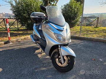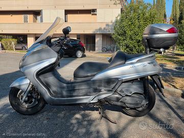 Yamaha Majesty 400, colore grigio chiaro metallizzato, Km 92000, anno 2009, ottimo stato, sempre tagliandato, motore in perfetto stato, gomme al 50%, bauletto Givi 46 lt, schienalino givi, leggera strusciata come da foto, parabrezza un po opacizzato dal tempo.