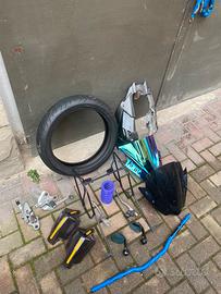 Specchietti rizoma, manubrio basso blu, ruota anteriore, cupoloni sport, paramani, staffe porta valigie leve freno, frizione e padaline originali ecc...