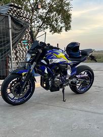 La moto presenta molti upgrade che successivamente andrò a elencare, se veramente interessati leggete attentamente. La moto è depotenziata per patente A2 a "libretto" (con due viti si rimonta il depotenziato meccanico) É importante precisare che la moto é stata "incidentata" quando aveva 45k km, é stata completamente risistemata e ora ne ha 77k km, gli UNICI difetti che ha sono principalmente estetici come si può vedere nelle foto, carena destra leggermente graffiata, scarico e sella passeggero. La moto é sempre stata tenuta in box privato, essendo che é stata utilizzata anche in pista occasionalmente, é sempre stata trattata molto bene e con le dovute accortezze, superati i 50k é stata tagliandata ogni anno a inizio stagione come suggerisce casa madre . No perditempo, prezzo leggermente trattabile, valuto permute con moto più grandi. La moto presenta: -faro posteriore full lad -catena nuova did 20 marzo 2024 circa 67k km -cambio elettronico con centralina collegabile dal telefono -allarme antifurto -quadloack -Tubi in treccia Accossato davanti e dietro -Faro full led -Cupolino nero -sospensioni NUOVE (montate post incidente crica 45k km) con cartucce Andreani completamente regolabili -Copri radiatore blu mt-07 -Scarico completo roadzitalia OMOLOGATO -porta targa pieghevole -Frecce nano led -tamponi Para motore -Grafiche -Specchietti a manubrio -manubrio nero più largo -Copri pignone blu mt-07 -Copri vaschetta acqua mt-07 -Parafango/para catena blu mt-07 -monta ant:pirelli rosso corsa ll 30% Post: pirelli rosso lV 5% -Gioco valvole fatto a 45.000km -corona e pignone DID cambiati a circa 60.000km -tappini vari in ergal -olio e filtro olio cambiati ogni anno come da casa madre -liquido freni brembo 500++ - leve nere -adesivi cerchi -pastiglie anteriori carbo ceramiche montate estate 2023 (Sicuramente mi sono dimenticato qualcosa)