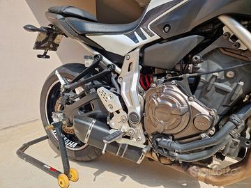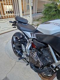 -Yamaha MT07 versione 2014/2016, 689 cc, 55 kw, 75 cv -Immatricolazione aprile 2016 -13000 km -Scarico omologato Roads Italia Carbon completo di catalizzatore e db killer -Gomme metzeler sportec m7rr -Portatarga regolabile barracuda -Griglia protezione radiatore Urbano Bruni -Manopole v-trec -Cupolino Ermax -Batteria BS btz10s appena sostituita -Bollo pagato per l'anno corrente -Revisione valida fino al 04/2027 -Fornisco portatarga originale e scarico originale - Passaggio a carico dell'acquirente