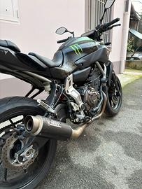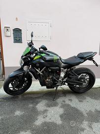 Yamaha MT-07 depotenziata del 2017. Presenta qualche graffio sulle grafiche in plastica e sulle pedaline. Non ha ABS