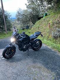 devo vendere a malincuore Yamaha Mt-07 perfetta sia a livello estetico che di motore. Moto non depotenziata, moto del 2017, percorso 12500 chilometri, tagliando effettuato meno di 1000 chilometri fa. Moto tenuta sempre su cavalletto posteriore, Gomme Dunlop, posteriore 40%, anteriore 70%, scarico completo Roads omologato con certificazione (490?), cupolino in carbonio, faro a led, frecce barracuda, porta targa barracuda, tamponi barracuda, bilancieri antivibranti barracuda, tappi serbatoio olio freni nuovi, carter per vaschetta liquido di raffreddamento nuovo. Prezzo non trattabile, non accetto scambi, no perdi tempo. Non dispongo di scarico originale già venduto. Cavalletto alza moto acquistabile per 30? a parte.