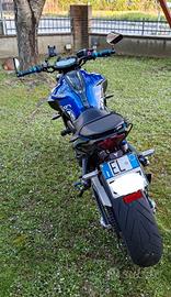 Moto sempre tagliandata in Yamaha (certificati), ultimo tagliando eseguito a luglio 2025 come anticipo del tagliando dei 20 mila chilometri. Pneumatici installati l'anno scorso, con circa 2 mila km all'attivo. Mai incidentata, mai pista. Portatarga, frecce anteriori e posteriori, fianchetti laterali radiatore, paracatena e USB ricarica telefono sono accessori originali Yamaha. Specchietti Barracuda omologati e scarico completo RoadsItalia omologato e catalizzato. Sono disponibili specchietti originali, leve freno e frizione originali, scarico originale, tappo serbatoio olio freni anteriori. Altri accessori installati: - Adesivi personalizzati Yamaha su tutta la carrozzeria e cerchioni; - Tappo serbatoio olio posteriore in alluminio; - Batteria al litio