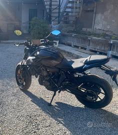 Vendo splendida Yamaha MT-07 modello 2023 (versione con display TFT) in condizioni impeccabili, pari al nuovo. La moto è stata curata maniacalmente, sempre riposta in garage e utilizzata con estrema attenzione. DATI PRINCIPALI: • Chilometraggio: 6.816 km • Manutenzione: Tagliandi eseguiti regolarmente presso concessionaria ufficiale Yamaha (documentabili). • Stato: Mai incidentata, nessuna caduta, nemmeno da fermo. Garanzia ufficiale ancora valida. MIGLIORIE E ACCESSORI (Valore oltre 1.500€): La moto è stata perfezionata sia nella ciclistica che nell'erogazione, risolvendo i piccoli "difetti" del modello originale: • Performance: • Scarico completo Arrow (Omologato): sound profondo ma legale. • Filtro aria sportivo Sprint Filter. • Centralina aggiuntiva Rapid Bike Plug & Play: installata esclusivamente per ottimizzare la carburazione e la fluidità di erogazione (non per uso pista o esasperazione dei cavalli). La moto gira ora in modo perfetto e lineare. Completamente reversibile in pochi minuti. Da considerare che la moto e depotenziata e tutti qiesti lavori non incidono sulla sua omologazione. • Comfort ed Estetica: • Sella Tappezzeria Italia: sostituita per eliminare il problema della sella originale troppo scivolosa. Comfort e grip ai vertici. • Protezione schermo TFT con vetro temperato opaco (anti-riflesso e anti-graffio). • Para leva in texture carbonio e cover serbatoio dedicate per un look più aggressivo e protetto. •pararadiatore dedicato NOTE AGGIUNTIVE: Insieme alla moto consegno tutte le parti originali (scarico, sella, ecc.) immacolate. La moto è pronta all'uso, non necessita di alcun intervento. Vendo per passaggio a diversa categoria. Prezzo: [6770€] Passaggio di proprietà a carico dell'acquirente. Disponibile per qualsiasi visione. No perditempo, sognatori o offerte ridicole. Per chi cerca una MT-07 già "finita" e curata nei minimi dettagli, questa è la moto giusta.