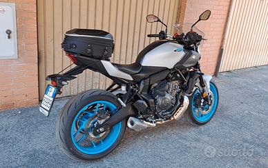 Yamaha MT 07 Y-AMT KM 1800 giugno 2025 accessoriata cupolino originale Yamaha, borse morbide laterali, sella confort, presa USB 7 anni di garanzia. Vendo a 6.400 euro.