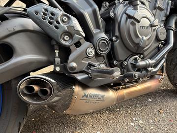 Come accessori monta scarico Akrapovic modello Mt-07 montato direttamente in Yamaha e immediatamente rimappata.