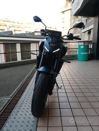 Nuovissima Yamaha MT07 dotata di cambio AMT che consente cambiate con le palette sul blocchetto SX in manuale, totalmente automatico e sportivo. Moto acquistata a Luglio di quest'anno 2025, con eseguito il 1° tagliando ai canonici 1.000km quindi con amplia garanzia ufficiale di casa Yamaha. Colore blu.