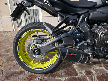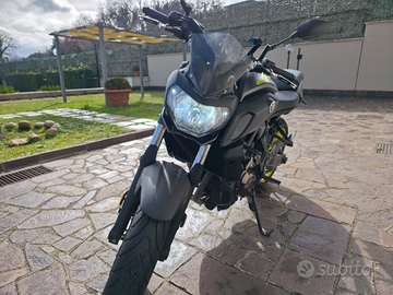 Vendo moto Yamaha mt-07 pari al nuovo pochissimi km (11.000 km) con frecce led porta targa sportivo leve dei freni sportive (optional) tenuta sempre in box garage su cavalletti che regalo in omaggio con la moto e d'inverno è stata sempre tenuta col mantenitore di carica che fornisco anche in regalo all'acquirente. Usata poco e niente solo in estate.