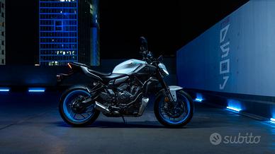 La MT 07 è la Moto Naked più venduta d'Europa, prestazioni ed elettronica ai massimi livelli, motore 700 cc bicilindrico, con potenza 35kw convertibile a 55 kw ( 75 cavalli ), ideale per chi vuole avere una moto da utilizzare per il passaggio da patente A2 alla A completa. Disponibile in pronta consegna tutte le colorazioni, Tech black, Ice Storm e blue. Importo interamente finanziabile, anche con piano finanziario con riscatto o restituzione finale ( EasyGo Santander ). Lunghezza 2.065 mmLarghezza 780 mmAltezza 1.110 mmAltezza sella 805 mmInterasse 1.395 mmAltezza minima da terra 150 mmPeso in ordine di marcia (compresi serbatoi olio e carburante pieni) Standard 6-speed manual: 183 kg; Y-AMT: 186 kg