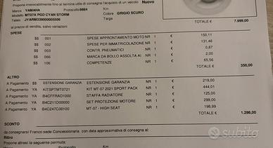 Come dimostra la foto appena eseguito il tagliando previsto per i 10000 Km presso officina ufficiale Yamaha di Asti; il bollo è pagato fino a luglio 2026. Non bisogna spenderci un euro, chi la compra deve solo salire in sella e divertirsi...