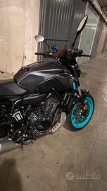 Vendo Yamaha MT-07 (unico proprietario) immatricolata il 20 giugno 2024 nella bellissima colorazione Grigio Metallizato e Cyan; perfettamente tenuta e mai caduta.