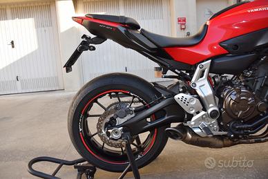 Vendo Yamaha MT 07 anno 2014 Moto davvero in ottime condizioni Accessoriata con: -frecce led originali Yamaha -porta targa con luce led originale Yamaha -Fianchetti radiatore e protezione vaschetta liquidi in alluminio Yamaha MT -cupolino Rizoma -manubrio in ergal nero piega media -leve in alluminio nere con regolatori rossi -mono posteriore YSS -tubi freno anteriori e posteriori in treccia -scarico completo Akrapovic in titanio -filtro sportivo BMC -fianchetti parafango anteriore e codino verniciati rossi in tinta(nel modello 2014 originale erano neri) Disponibile per domande o invio di altre foto NON DEPOTENZIATA