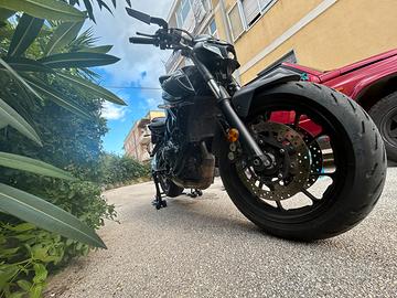 Gomme ancora nuove. La moto ha kit sport scarico akrapovich, pedalini regolabili, leve cambio e freno sport portatarga corto, specchietti piccoli ma disponibili anche originali.