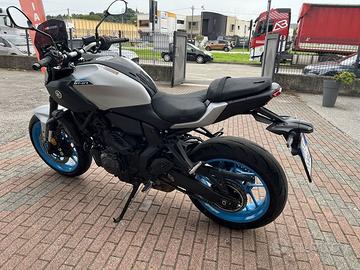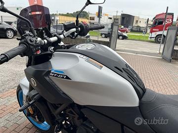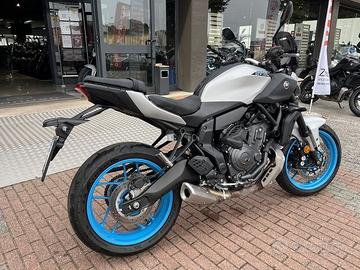 Controllo elettronico dell'acceleratore, modalità di guida YRC e TCS controllo di trazione YCC-T (Yamaha Chip Controlled Throttle) facilita una nuova generazione di ausili elettronici e contribuisce a un'erogazione di potenza ancora più lineare Yamaha Ride Control (YRC) consente di scegliere tra due mappe e il controllo di trazione e l'opzione di una modalità personalizzabile nuova forcella a steli rovesciati da 41 mm Nuovo display TFT a colori da 5" con connettività e navigazione La strumentazione TFT da 5 pollici di MT-07 è dotata di più temi e connettività con lo smartphone tramite l'app