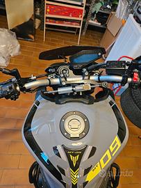 Vendo o permuto Yamaha mt09: _revisione appena fatta, _bollo pagato , motore cp3 tre cilindri 115 cv e 88 Nm coppia, _ tagliando e trasmissione a 30500 km _gommata nuova dunlop , _ammortizzatore sterzo, _pompanti anteriori matris , _leve freno frizione aftermarket regolabili, _frecce e portatarga aftermarket, _ paramotore stile stunt, _cupolino, _para radiatore dedicato, _ quick shift in salita (originale) e in discesa (aggiunto). Vendo per ritornare a bicilindrico come ktm duke e superduke , ducati monster 1200 , yamaha mt10 , In caso di permuta accetto solo moto con meno di 30000 km e cilindrata superiore a 900 . info 3482414413