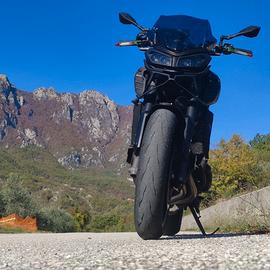 Vendo Yamaha MT-09 2020, colore nero, perfetta combinazione di potenza e maneggevolezza. Motore 3 cilindri brillante, frenata pronta e ciclistica agile: divertimento assicurato in città e fuoriporta.