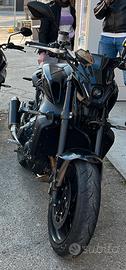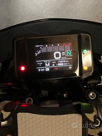 Vendo Yamaha mt09 del 2021 con 15.600km. Tutta nera come si vede dalle foto, perfetta senza un graffio o riga, tenuta in ottimo stato, mai caduta. Monta scarico shark omologato, tamponi para telaio e porta targa sportivo fatto mettere da concessionario. Dispongo di tutti i pezzi originali ovviamente. Moto sempre tagliandata regolarmente, catena lubrificata ogni 500km e pulita ogni 1000, mai pista solo uscite domenicali. Prezzo € 7.200