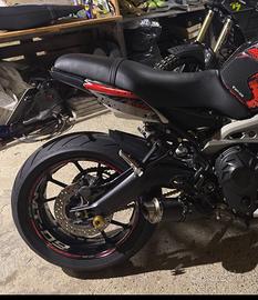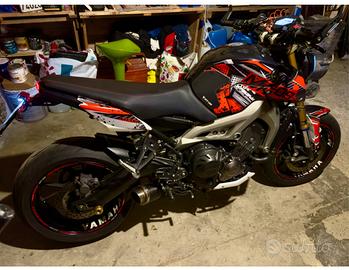 Vendo ( purtroppo ) per problemi importanti al ginocchio, bellissima Yamaha MT 09 del 2014 con 47000 km, e tantissimi accessori: pedane arretrate, gomme Pilot sport III nuove, trasmissione DID oro semi nuova, leve antirottura nuove, manubrio piega alta Pro Grip ( da montare ) nuovo mai usato, faro anteriore nuovo full led luminosissimo, batteria nuova, cupolino fume' nuovo, grafiche personalizzate, scarico corto omologato con libretto, frecce led barracuda omologate , faro posteriore led, porta targa compatto regolabile, specchi mini trapezioidali omologati, sella originale Yamaha nuova e sella super comfort da viaggio, comodissima, paraserbatoio, tagliando fatto a settembre, frizione nuova cambiata dal precedente proprietario a 30000 km, set borse morbide Shad nuove, casco Airoh Spektre modulare XL mai usato, comprato nuovo nel 2025 in regalo. Tanti altri accessori, qualcuno comprato nuovo e ancora da montare. Moto leggera, agile, potente, divertentissima. Dispongo anche di tutti i pezzi originali. Vendo per inutilizzo perché purtroppo con il problema al ginocchio non mi è possibile guidare la moto.