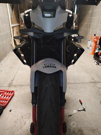 La moto è perfetta. Gomme ancora del concessionario. Accessoriata con ali e fianchetti per aumentare la deportanza ad alta velocità. Completa di bauletto con le staffe e tutto il resto. Pastiglie originali nuove sostituite con Brembo più performanti. Garanzia Yamaha fino al 2032. Accessori aftermarket tipo paramotore, copri carter e cavo USB-C per caricare il telefono. Smontati ma compresi cedo anche cupolino con paramani. Tagliando dei 1000 fatto. Tra un paio di mesi secondo tagliando dei 12 mesi.