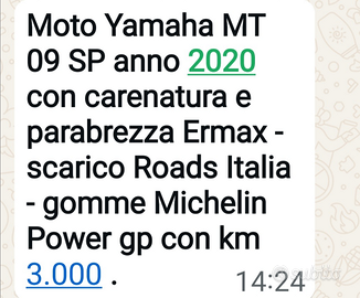 Cedo bellissima yamaha mt 09 sp Anno 2000 Agosto gomme seminuove Km 16000