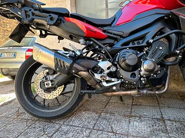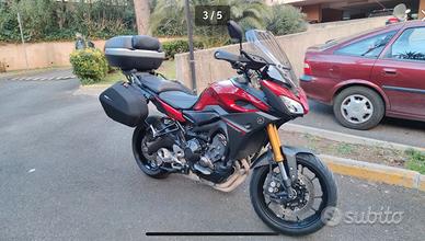 Yamaha MT 09 900 TRACER del 05/2015 Circa 50000 km può essere venduta come si trova a €6500,00 ( compresi pezzi originali) e In versione originale a €5500,00 con passaggio a carico dell’acquirente OPTIONAL: - scarico inox completo + emulatore sonda lambda ( per riduzione effetto on/off) - ammortizzatore posteriore YSS regolabile - cartucce regolabili forcella Mupo - pompa freno radiale BRACKING La moto presenta kit valigie Laterali Yamaha e Bauletto GIVI - Parabrezza alto GIVI - barre laterali di protezione e Cruise controll