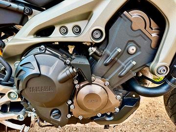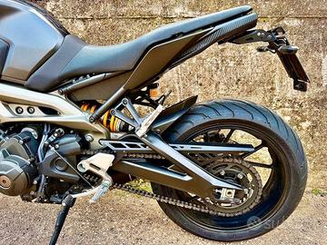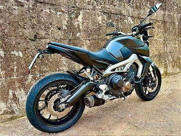 Anno 2013, Km 30.000. Con la MT-09 Yamaha torna al tre cilindri come negli anni '70 con la XS, il nuovo tre cilindri bialbero però ha una cilindrata di 847 cc ed è un motore estremamente compatto che pesa solo 60 kg ed eroga 115 cavalli. Tre mappe: STD (standard) è quella intermedia, la A dona invece una risposta pronta ai bassi, quasi aggressiva e la B smorza i toni, ma non i cavalli ed è perfetta per la guida col passeggero. Cambio a sei rapporti. Ciclistica: la MT-09 ha uno scheletro compatto, bello, moderno e leggero (pesa 10 kg). La posizione di guida è a metà strada tra una motard e una naked. Il manubrio è più alto e più arretrato, mentre sella e pedane sono strettissime. In questo modo il controllo è totale. Di questa tre cilindri non si può che parlar bene. Una moto che va vista dal vivo per essere apprezzata nelle sue proporzioni e soprattutto che va provata. Questa proposta in annuncio è stata conservata ed utilizzata in maniera MANIACALE, regolarmente TAGLIANDATA e si presenta in ottimo stato. Accessori: - Mono e cartucce forcelle Öhlins (kit Andreani) - Scarico completo Roads Italia (omologato) sia punzonato su terminale che con certificato cartaceo - Tubi freno in treccia - Frecce/posizione a led originali racing Yamaha - Portatarga sportivo Yamaha - Cupolino Fabbri e spoilerino sottofaro (verniciati) - Paracatena, cover prese aria, cover dispositivo frizione, faro posteriore di Urbano Bruni - Leve frizione e freno corte - Protezione radiatore - Fianchetti radiatore effetto carbon - Protezione cavi tachigrafo carbon Si valutano PERMUTE. Possibilità di FINANZIARE anche interamente il prezzo di acquisto. Garanzia 1 anno. Per contatto diretto ed info: [?]