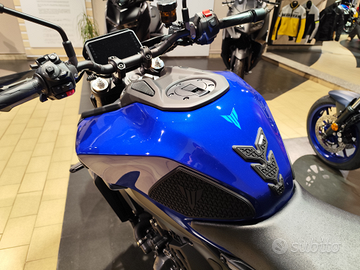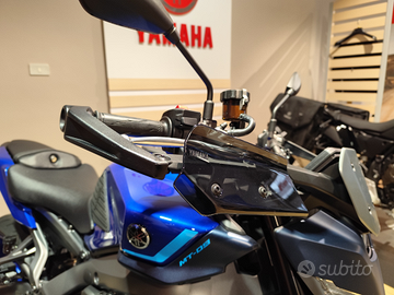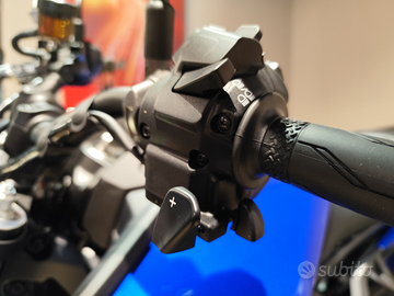 Yamaha MT-09 Y-AMT ( Yamaha automated trasmission - cambio manuale automatico ) MT-09 Y-AMT è una versione innovativa della popolarissima fun bike Yamaha, dotata di un cambio manuale automatizzato. Questo sistema consente cambi di marcia senza l'uso della frizione, migliorando l'esperienza di guida sia per i motociclisti esperti che per i principianti. Il sistema Y-AMT utilizza due servomotori per gestire automaticamente le cambiate, eliminando la necessità di una leva della frizione e di un pedale del cambio. Ciò offre una guida più fluida e confortevole, particolarmente utile nel traffico urbano senza rinunciare alle peculiarità che da sempre contraddistinguono MT-09. Ovvero sportività e divertimento. Il cambio infatti ha due impostazioni, automatico e manuale. Nella modalità automatica il pilota può comunque intervenire manualmente, cambiando marcia a piacimento, inoltre adatta perfettamente le cambiate in base allo stile di guida del pilota. Nell'utilizzo urbano ad esempio, le cambiate saranno fluide e perlopiù a regimi medio bassi per garantire confort di guida e ridurre i consumi. Nel misto veloce dove il pilota utilizzerà la manopola del gas con maggiore apertura, le cambiate avverranno quasi a limitatore di giri per garantire maggior coppia possibile ed assicurare il massimo divertimento possibile. Perplessità in merito? Contattaci per un test ride. Esempio di finanziamento : Tua in 36 rate da ? 209 , anticipo di ? 1.500 e valore futuro garantito. 7 anni di garanzia, assistenza stradale e manutenzione ordinaria compresi.