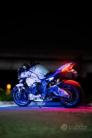 Molti la conoscono già ma elenco tutti gli optional -completo in titanio akra -pedane arretrate -cupolino warrior - copri farò oscurante -Specchietti rizoma -telaio completo ed elettronica completa di R1M - puntale copri collettore r1 2020 - mappatura dedicata ibrida r1 - airbox modificato -led interni alla moto - moto spinge a terra 165 cv - gomme s22 e s23 disponibili - grafiche rimovibili in crystal - led di posizione posteriore vddesign - portatarga corto DISPONIBILITÀ DI RIPORTARLA ORIGINALE - UNICO PROPRIETARIO