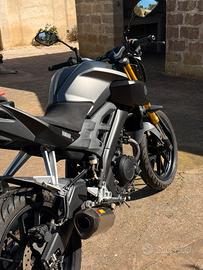 Yamaha MT-125 2016 ABS, circa 13.000km tagliandata in officna ufficiale yamaha e ferma dal 2020 per inutilizzo. Monta scarico completo della Akrapovic. Una naked sportiva perfetta per neopatentati. Copri motore inferirore mancante e batteria nuova da installare prima della vendita.