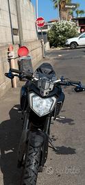 Vendesi per passaggio a cilindrata superiore. La moto presenta scarico arrow di serie, sella guidatore e passeggero personalizzata volcano con cuciture blu elettrico, specchietti dedicati con dettaglio blu elettrico e leva cambio frizione e freno dedicati con dettagli blu elettrico.