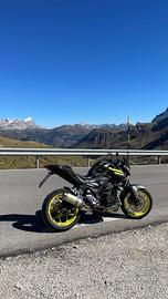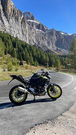 Moto yamaha MT03 del 2018 con 23.000 km, mantenuta divinamente come nuova. La mota monta.: Scarico completo Arrow omologato, filtro aria sport, specchietti, manopole, porta targa, Leve, cupolino, dischi freni, tamponi e para motore , parafango posteriore, nottolini, centralina aggiuntiva, griglia radiatore, catena trasmissione appena montata color oro.