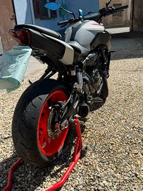 In vendita Yamaha MT-07 anno 2020 con 22.000 km. La moto è stata sottoposta a regolare manutenzione, come dimostrano le fatture. L'ultimo tagliando è stato effettuato 2.000 km fa presso officina Yamaha. La moto è in condizioni ottime e pronta all'uso. Non è mai stata utilizzata in pista, ma solo per giri nel fine settimana. La moto è dotata di: porta targa sportivo, frecce anteriori e posteriori a LED, luci di posizione, anabbaglianti e abbaglianti a LED, cupolino anteriore,scarico omologato ROADS, pneumatici all'80%.,
