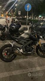 Come da titolo si vende questa moto avente cc125 ABS guidabile a partire dai 16 anni con patente A1. La moto attualmente è ferma da poco più di 6 mesi ed ha 19402 km, quindi usata relativamente poco. Monta completo Akrapovic dal valore di €800, contrappesi lightech, porta targa corto e frecce ant e post dinamiche led after market. Dato che la moto è stata usata poco ed è ferma da un po di tempo, necessita di tagliando e prima di rimetterla su strada si consiglia di prendere tutte le accortezze del caso. La moto ha i suoi anni e km, quindi se vi aspettate una moto perfetta andate da un concessionario. Revisione scade a Maggio. Prezzo leggermente trattabile.