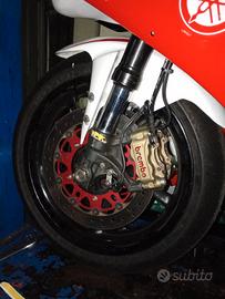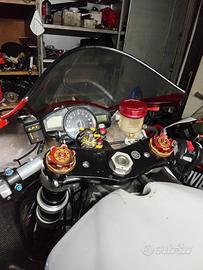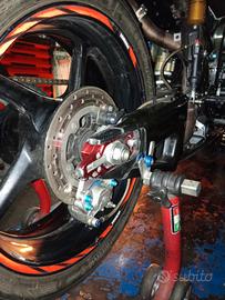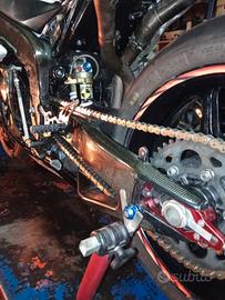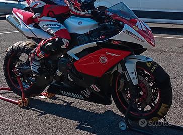 Yamaha r1 16v anno 2007-2008 solo uso pista ,non immatricolata,vendo con fattura acquisto telaio in originale intestato a mio nome, motore appena revisionato, documentabile con foto ,testa lavorata, guarnizione testa yec,volano yec , candele yec,,assi a camme riprofilate cam F1,, radiatore aggiuntivo RTM ,sospensioni complete Mupo , serbatoio carburante in carbonio 21 litri interamente in carbonio,pinze freno Brembo P4, pompa freno ant Brembo Rcs,pinza freno posteriore Brembo con staffa rovesciata e registri ruota in ergal Bonamici,pedane Light tech, protezioni complete motore telaio e forcellone in carbonio,paramotori Light tech,cambio elettronico completo salita e scalata (bleepper) IRC , controllo di trazione IRC, dischi freni Discacciati, pastiglie freno in ottime condizioni,catena trasmissione Did nuova 520, nessun lavoro da eseguire, pronta all'uso ,vendo per problemi fisici,per informazioni e ulteriori foto contattatemi in pvt,primo contatto via mail,vendo 6000 euro poco trattabili